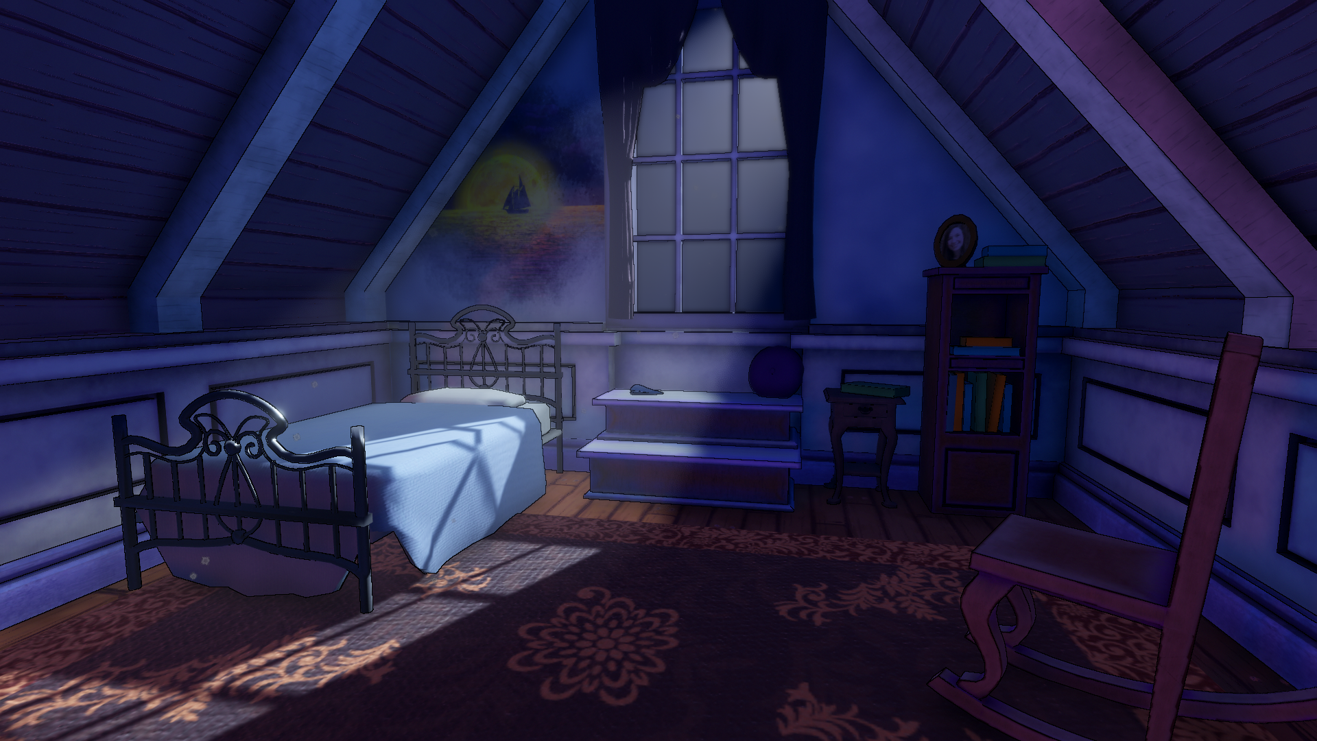 As her sailor’s hat, the treasured reminder of her seafaring father, is tossed by the breeze just out of reach, Selene must make a journey to reclaim it. As she wanders her house at night, she encounters locked doors with mysterious voids on them in the shape of objects such as a sailboat, an anchor, or a whale. To fill in the voids, Selene combines toys and household objects into shadows matching the form. Each successive puzzle reveals more of the story. Aluna is a meditative game that invokes a feeling on intrigue and cognitive amusement.