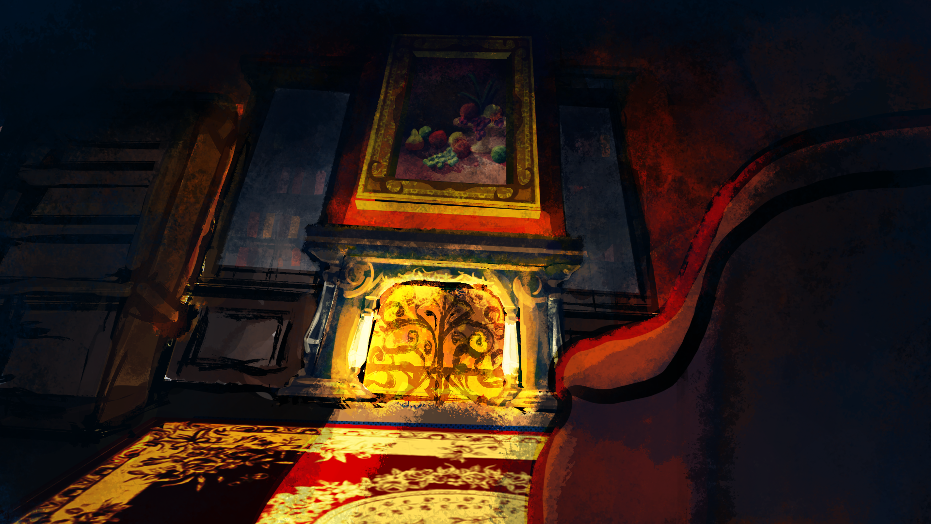 The focus of these drawings was to try to capture the feeling of the game through the use of lighting and color. Using dark blue instead of black for areas of darkness, using warm lighting to contrast with the blue and to add a certain sense of comfort and warmth to a setting that could easily feel cold and isolating with different lighting.