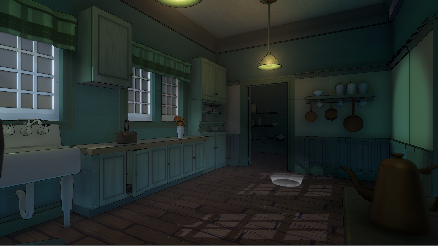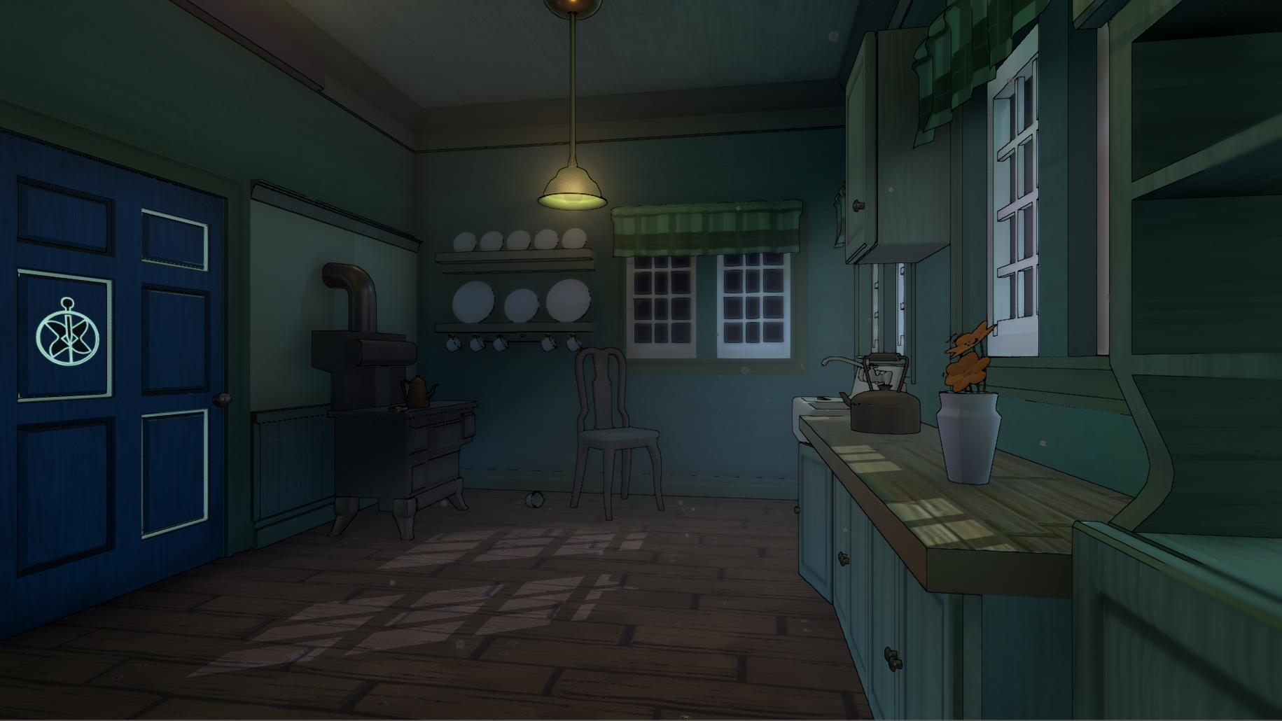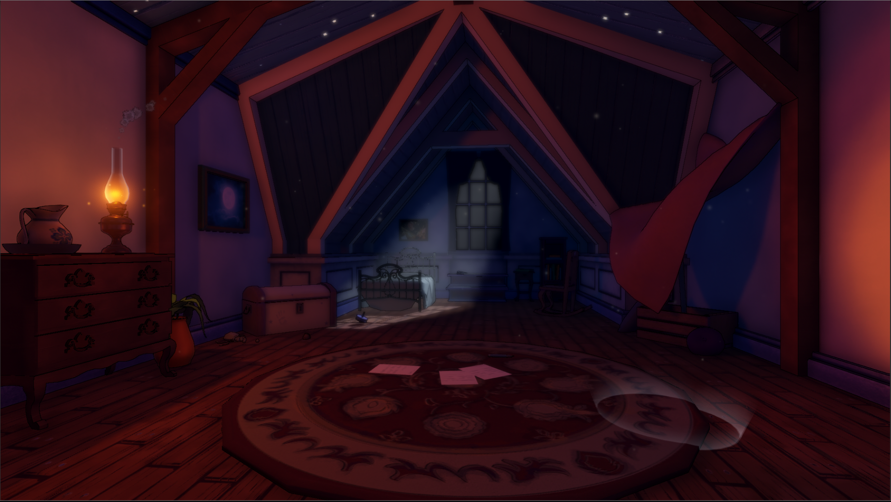 For Aluna I did all of the lighting that you see in the rooms and hallways found in the game. The only sequences in the entire game that I did not do the lighting for is the ending cut scene which is not pictured.