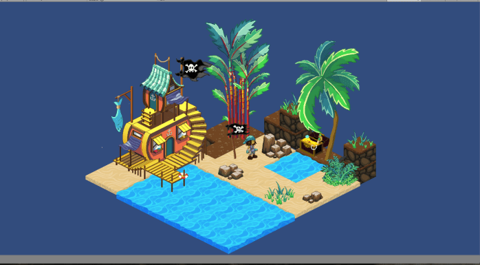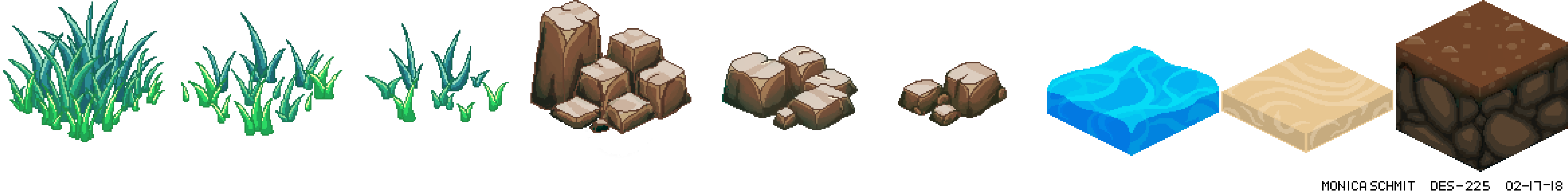 Project that involved creating a set of world ground tiles, a character, a house, & a series of objects/foliage and placing them into Unity.